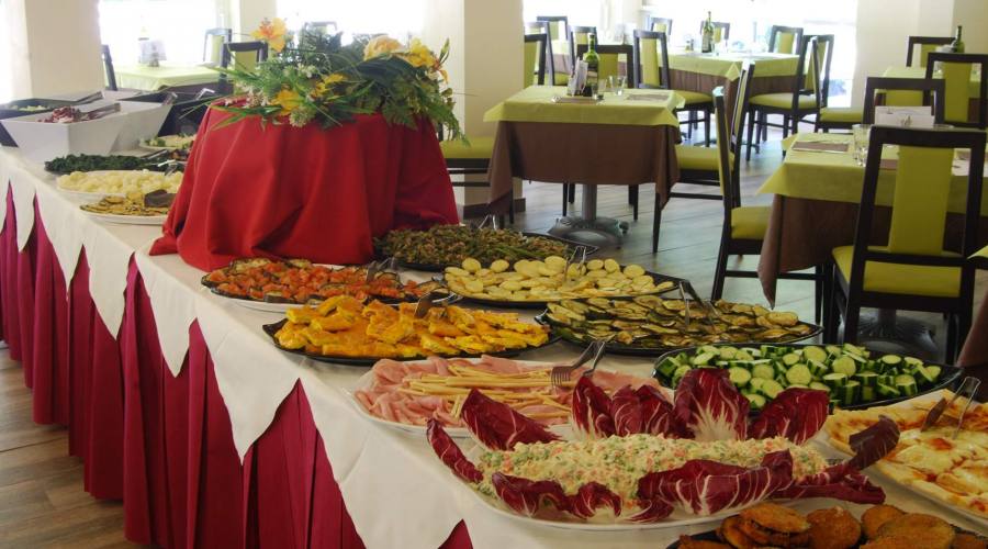La cucina propone piatti della cucina tipica romagnola con triplo menù a scelta e buffet di verdure. Prima colazione a buffet.